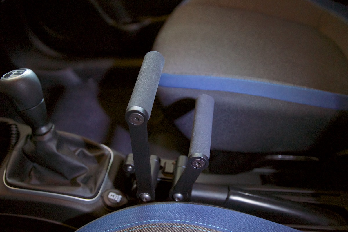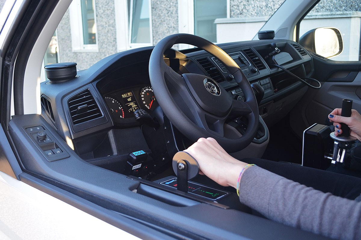 Electronic joystick has been specially designed to allow people with serious disabilities to be able to drive the car using this convenient remote control unit, consisting of a mini-lever (see photo 7), which moves in 4 directions, to be positioned inside the vehicle in the most suitable configuration by the user. With a single lever, the vehicle performs all the driving functions (acceleration, braking, steering), with extreme precision and in safety. The effectiveness and reactivity of operation is made even more suitable for driving for quadriplegic people, thanks to the similarity with electric wheelchairs equipped with Joysticks.