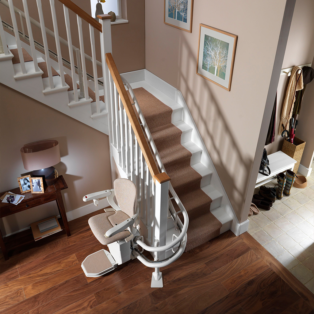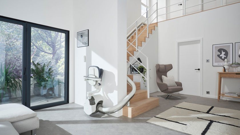 Stair lifts are applied at home, workplaces and outdoors for people with reduced mobility.