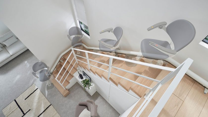 Stair lifts are applied at home, workplaces and outdoors for people with reduced mobility.